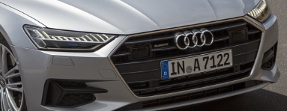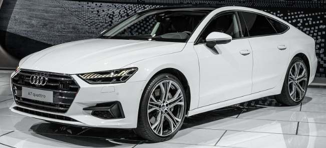 아우디 A7의 외부 디자인을 보면 A8가 유사하다고 볼 수 있습니다. 대신 A8보다 넓고 낮은 싱글프레임 그릴을 장착하여 스포티함을 강조했습니다.