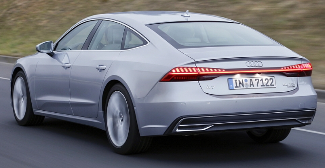 그래서 헤드램프 역시 더 얇아졌으며, 날렵해졌습니다. 범퍼 역시 굉장히 얇아서 스포츠카를 연상시키기도 합니다. 후면 역시 A8과 굉장히 유사합니다.