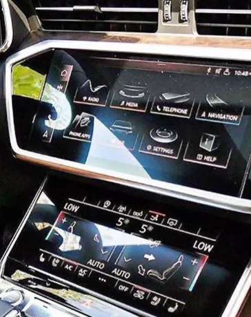 위쪽의 터치스크린은 10.1인치로 네비게이션 등을 조작하며 아래의 터치스크린은 8.6인치로 공조시스템을 담당합니다. 계기판은 12.3인치라서 굉장히 넓고 디지털이라서 고급스러움이 느껴집니다.