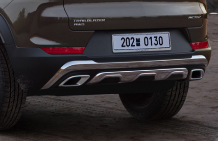 쉐보레 트레일블레이저 ACTIV 후면 하단에는 다크 티타늄 소재를 사용하여 더 강렬한 이미지를 심어주었으며 스퀘어 타입의 듀얼 머플러를 장착했습니다.