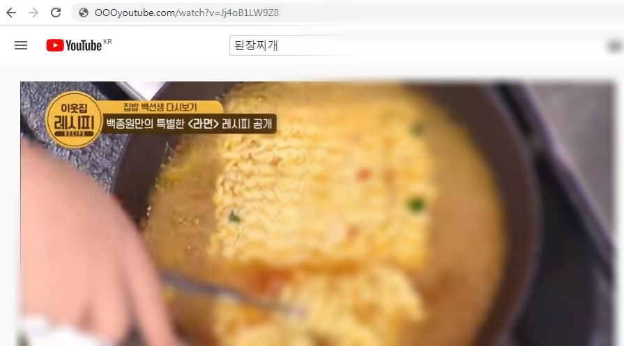 이번에는 백종원의 라면 레시피에 관한 영상으로 유튜브 동영상 다운로드 하는 방법을 실행해 보도록 하겠습니다.