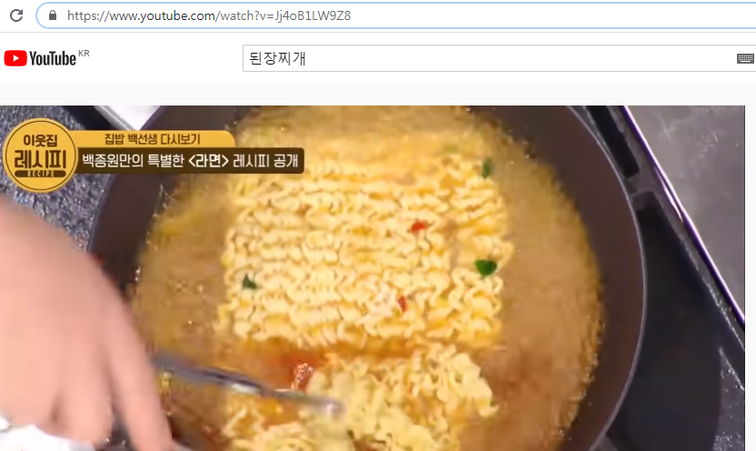 이번에는 백종원의 라면 레시피에 관한 영상으로 유튜브 동영상 다운로드 하는 방법을 실행해 보도록 하겠습니다.