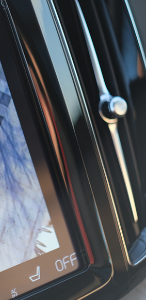 센터페시아 위쪽 디스플레이는 세로형 9인치가 적용되며, 다양한 기능을 여기서 조작이 가능합니다. 물리적인 버튼을 최소화하여 깔끔함을 추구하기 위해서입니다.
