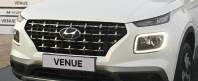 베뉴 전면을 보시면 그릴이 격자형으로 꾸며졌습니다. 그러면서 위에서 점점 좁혀져 내려오는 디자인은 그릴이 그렇게 작아 보이지 않게 하는 효과도 주고 있습니다.