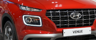 베뉴 전면을 보시면 그릴이 격자형으로 꾸며졌습니다. 그러면서 위에서 점점 좁혀져 내려오는 디자인은 그릴이 그렇게 작아 보이지 않게 하는 효과도 주고 있습니다.