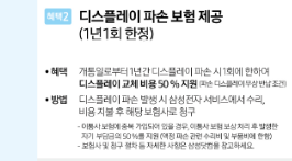 갤럭시 S20 사전예약을 했을 때 주는 네 번째 혜택은 '디스플레이 파손 보험 할인권'입니다. 1년 이내에 디스플레이가 파손돼서 수리를 할 경우 수리비의 50%를 지원해 줍니다.