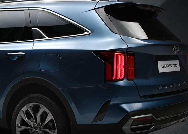 4세대 쏘렌토 신형 후면부 버티컬 타입의 테일램프는 엠블럼, 와이드 범퍼 등과 대비를 이루면서 강인한 인상을 주고 있습니다.