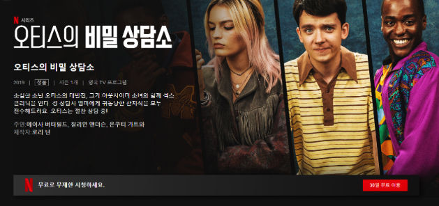 여덟 번째로 소개할 넷플릭스 미드추천은 오티스의 비밀 상담소입니다. 이 드라마도 19금 이지만 장면에서 그렇게 선정적인 것은 없습니다.