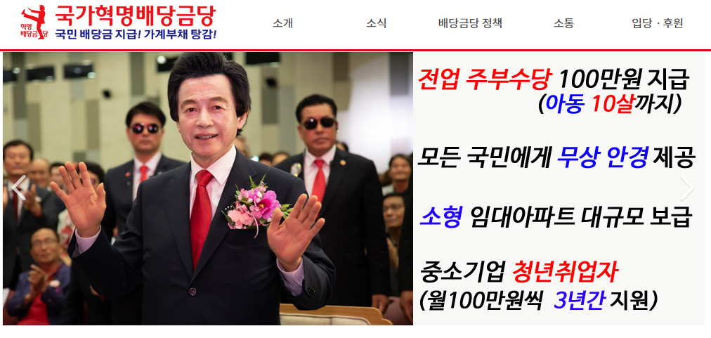 그런데 이번에 허경영이 대표로 있는 국가혁명배당금당 역시 총선에서 만날 수가 있습니다. 일단 지역구로 출마를 하면 낙선의 확률이 높기 때문에 비례대표를 노릴 텐데요. 그래도 국가혁명배당금당 소속으로 출마하는 후보도 있긴 합니다.
