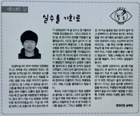 학보사에서는 편집국장을 맡기도 했습니다. 학보사는 그 대학교의 소식을 전해주는 곳이라고 생각하면 되는데요. 일종의 신문사라고 생각해도 좋을 것 같네요. 그만큼 글쓰기에는 재능이 있었던 것 같습니다.