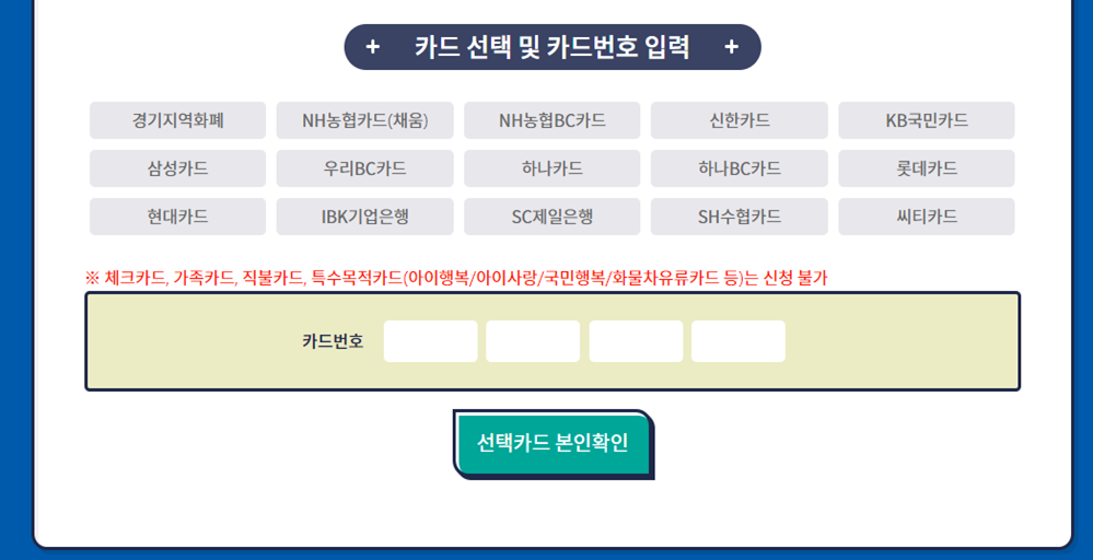 2. 경기도 재난기본소득 신용카드 신청방법
