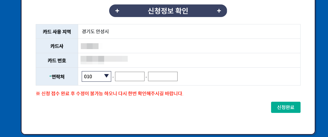 마지막으로 신청정보 확인을 위해