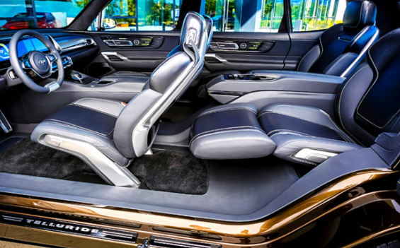 기아 텔룰라이드의 내부 디자인은 전체적으로 수평적이고 직선을 강조한 듯한 이미지라는 것을 알 수 있습니다. 또한 나파 공법 가죽, 브러시들 메탈, 무광 마감 소재 등을 사용하여 훨씬 고급스럽습니다.