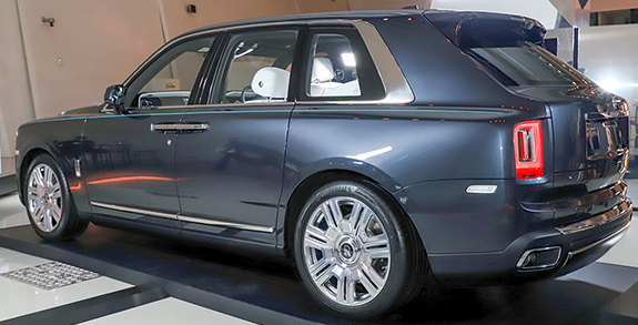 후면 역시 팬텀과 크게 다를 거 없이 매우 간결해 보이지만 테일 램프가 조금 더 각이 살아있습니다. 팬텀은 사다리꼴 비슷한 모양으로 돼 있는 것에 비해 컬리넌은 각이 잡혀 있는 모습이죠.