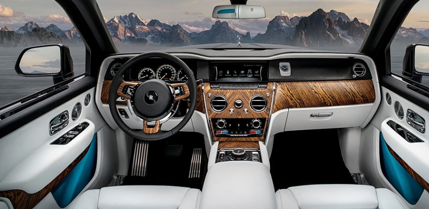 롤스로이스 컬리넌 내부는 그냥 딱 봐도 고급스럽다는 것을 느낄 수 있는데요. 비스포크 인테리어가 적용되어 더 그러한 느낌을 주고 있습니다.