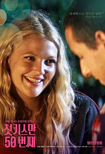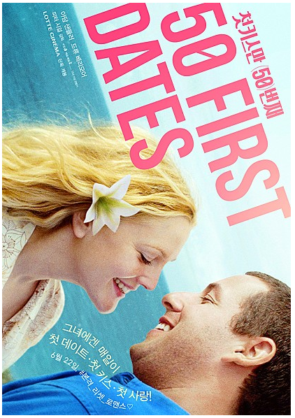 다섯 번째 집에서 볼만한 영화추천은 "첫 키스만 50번째"입니다. 아담샌들러는 수족관에서 일하고 있는데 어느 날 식당에서 드류 베리모어를 보고 첫눈에 반합니다.