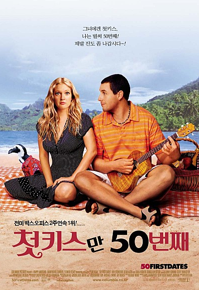 다섯 번째 집에서 볼만한 영화추천은 "첫 키스만 50번째"입니다. 아담샌들러는 수족관에서 일하고 있는데 어느 날 식당에서 드류 베리모어를 보고 첫눈에 반합니다.