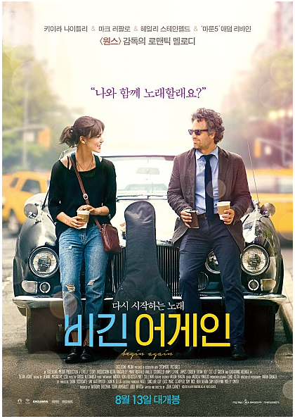 네 번째 집에서 볼만한 영화추천은 "비긴어게인"입니다. 음악을 잘 모르는 분들도 정말 감명 깊게 볼 수 있는 영화인데요.