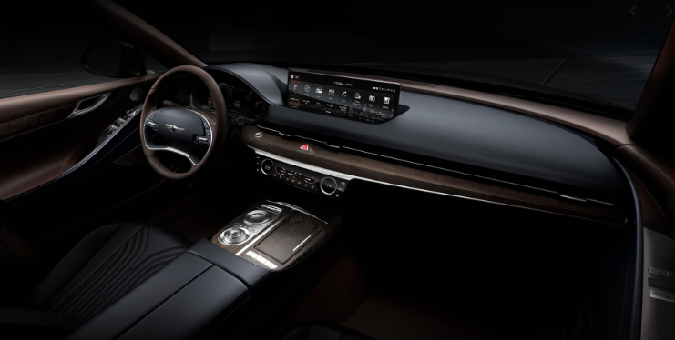 앞좌석 역시 제네시스 g80만의 고급스러움이 묻어나오는데요. 일단 클러스터가 12.3인치로 굉장히 큽니다. 거기에 중앙에 있는 디스플레이 크기 역시 14.5인치로 시인성만큼은 탁월하죠. 그러나 공간은 여기까지만 차지하고 나머지는 거의 여백의 미를 강조하고 있습니다.