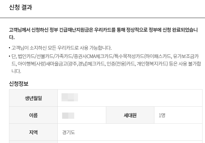 우리카드 긴급재난지원금 신청 방법